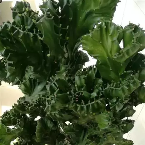 魁伟玉原产南非,是一种大戟科的多年生肉质植物,植株具粗圆筒形肉质茎,有10条以上的突出棱,…