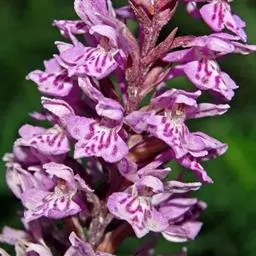 紫斑掌裂兰是兰科掌裂兰属下的一个种。紫斑掌裂兰有各种颜色,其高度在15至60厘米之间。它在6月至8月开花,花序一开始为锥形,再变为柱形。花色在白色和浅紫色之间,上有紫色斑点、对称的深紫色图案,如圆圈、斑点和短线。某些花群有强烈的芬香,能吸引日间活动的飞蛾。叶子呈细披针形,有一条龙骨,一般有深色斑点。紫斑掌裂兰能生长在针叶林、榉木林和板栗林以及湿度适合的草甸、沼泽和溪流的边缘。山区、亚高山和高山地区的紫斑掌裂兰生长在海拔900至2300米,其余地方则在近海平面处生长。图为紫斑掌裂兰。