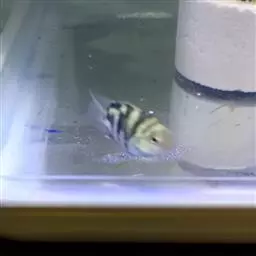 3.亲鱼对后代关怀备至。产卵完后,亲鱼轮流用胸鳍对卵扇水,保持足够的溶氧量。经过数昼夜的照顾,受精卵孵化成仔鱼。亲鱼会将未受精的卵都吃掉,以免该卵腐败而保持新鲜的水质。在孵卵与仔鱼期间,亲鱼的性格也变得凶猛,不许其他鱼靠近卵或仔鱼群。