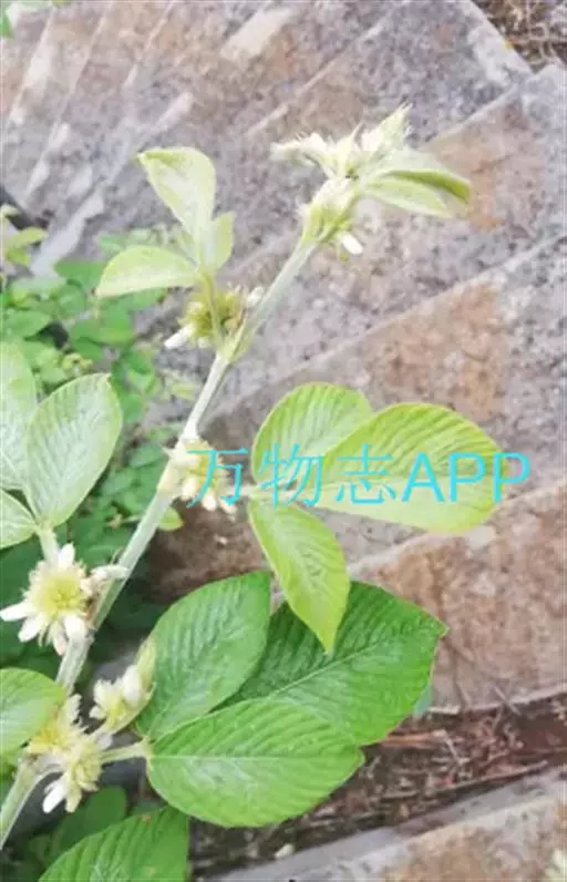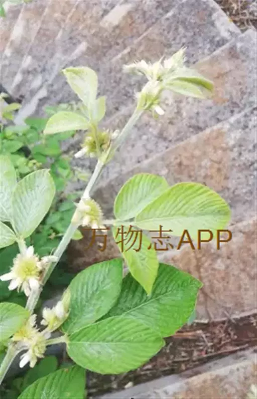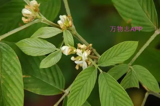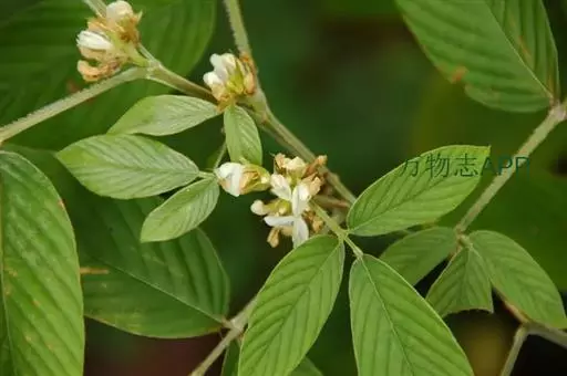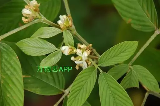灌木,高1-2米;嫩枝三棱形,密被灰白色丝状毛,老时变无毛。叶为三出羽状复叶;托叶披针形,长8-20毫米,外面密被灰白色丝状毛;叶柄长1-2.5厘米,具沟槽,被开展或贴伏丝状毛;小叶硬纸质,顶生小叶倒卵状长椭圆形,长7-15厘米,宽3-6厘米,先端渐尖,基部钝圆或宽楔形,侧生小叶略小,基部略偏斜,上面无毛,下面被长丝状毛,脉上毛尤密,侧脉每边10-17条,直,直达叶缘;小托叶钻形至狭三角形,长3-8毫米;小叶柄长0.5-1.5厘米,被开展或贴伏丝状毛。