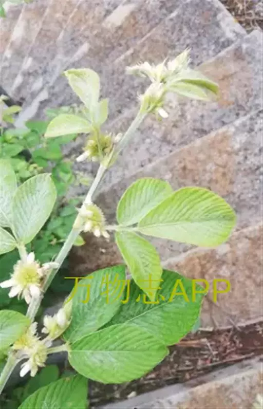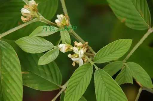 花序腋生,伞形花序有花20-30朵;苞片披针形,花梗不等长,密被贴伏丝状毛;花萼长5-9毫米,被贴伏丝状毛,萼筒长1.8-3毫米,下部1裂片与萼筒近等长,其余比萼筒稍短;花冠白色或淡黄色,长约9毫米,旗瓣宽椭圆形,具短瓣柄,冀瓣和龙骨瓣长圆形,基部具瓣柄;雄蕊长8-12毫米;雌蕊长7-14毫米,花柱长7-12毫米,子房被毛。荚果长2-2.5厘米,稍弯曲,有荚节3-6,被贴伏丝状毛;种子椭圆形,长2.5-3.5毫米,宽2-2.5毫米。花期8-10月,果期10-12月。