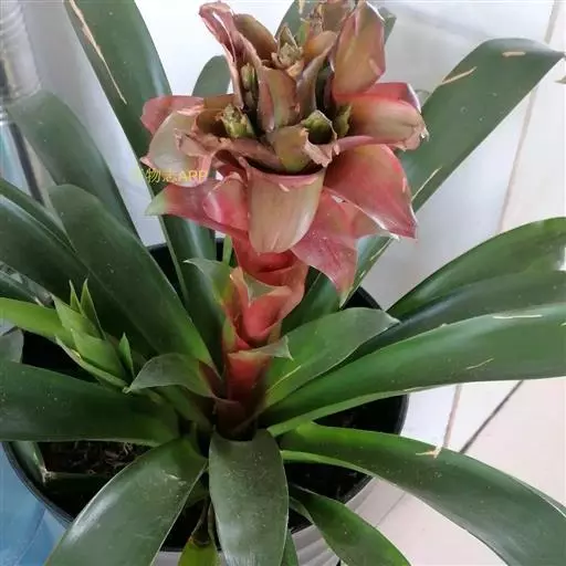 彩叶凤梨 L.B.Sm.) 凤梨科多年生常绿草本。株高25-30厘米,茎短。叶革质,带状,常基生,…