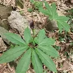 黄苞南星 Schott)是天南星科、天南星属植物,块茎近球形,鳞叶锐尖,叶片鸟足状分裂,…