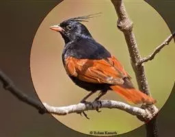 红头咬鹃: 体大,体长约33厘米,体重75-110克。头、颈暗绯红色;背、肩锈褐色。两翅黑色,…