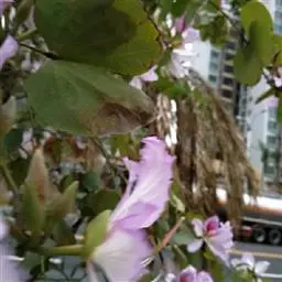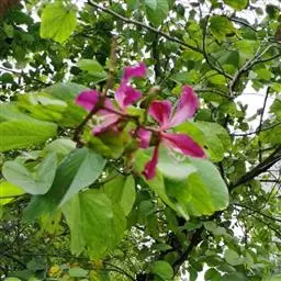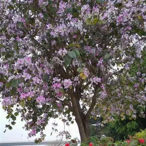 洋紫荆:落叶乔木;树皮暗褐色,近光滑;幼嫩部分常被灰色短柔毛;枝广展,硬而稍呈之字曲折,无毛。叶近…