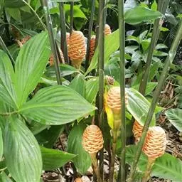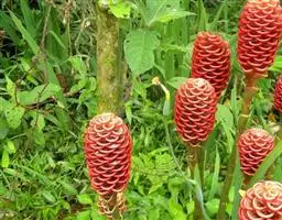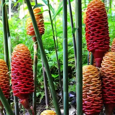 珊瑚姜是姜科、姜属植物。株高近1米。叶片长圆状披针形或披针形,长20-30厘米,宽4-6厘米,…