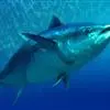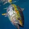 蓝鳍金枪鱼(学名:Thunnus thynnus)是鲭科、金枪鱼属鱼类。最大体长430厘米,重达800多千克,一般常见100-300厘米。体纺锤形,粗壮,横切面近于椭圆形。吻部圆锥形,口大,上颌骨向后伸达眼睛下缘中下部。尾柄细,两侧各有1大2小隆起脊。体被细小圆鳞,胸部鳞片特大,形成胸甲。背鳍2个,相距很近。胸鳍短,末端到第一背鳍中部。腹鳍尖突分离。第二背鳍和臀鳍后方各有8-10个小离鳍。尾鳍新月形。背部青黑色,腹部银白色,尾柄隆起嵴黑色。第一背鳍黄色或蓝色,第二背鳍红褐色,臀鳍和离鳍暗黄色并带有黑色边缘。
