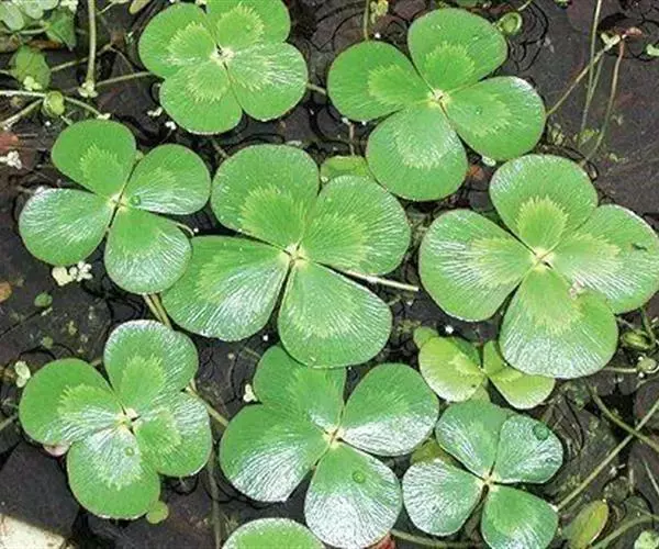 蘋(Marsilea L.),多年生草本植物。根状茎匍匐泥中,细长而柔软,不实叶具长柄,长7~20厘米,叶柄顶端有小叶4片,十字形,对生,薄纸质;小叶倒三角形,长与宽1~3厘米,先端浑圆,全缘,叶脉叉状,下面淡褐色,有腺状鳞片。孢子果斜卵形或圆形,长2~4毫米,被毛,于叶柄基部侧出,通常2、3个丛集,柄长1厘米以下,基部多少毗连;果内有孢子囊群约15个,每个孢子囊群具有少数大孢子囊,其周围有数个小孢子囊。