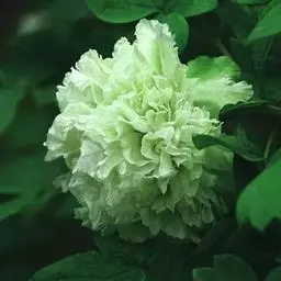 绣球型:雄蕊充分瓣化,内外瓣形状大小近似,拥挤隆起,呈球形;雌蕊基本或全部退化或瓣化,无结实能力。此类花型以“豆绿”、“绿香球”、“雪映朝霞”等品种为代表。