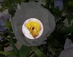 单瓣型:花瓣2-3轮,10-15片,宽大平展,雄蕊200-300个,雌蕊4-6枚,雄、雌蕊发育正常,结实能力强。此类花型以“鸦片紫”、“石榴红”、“凤丹白”等品种为代表。
