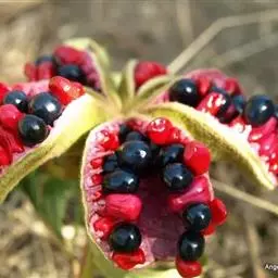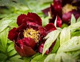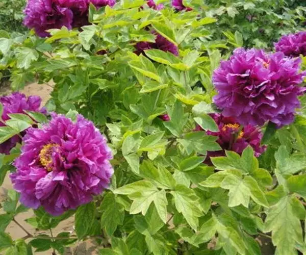 落叶小灌木,高1-1.5米;二回三出复叶,小叶常3-5裂;初夏开白色、红色或紫色花,花单生大型;雌蕊生于肉质花盘上,密被细毛。