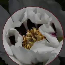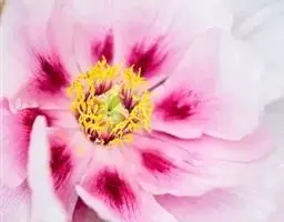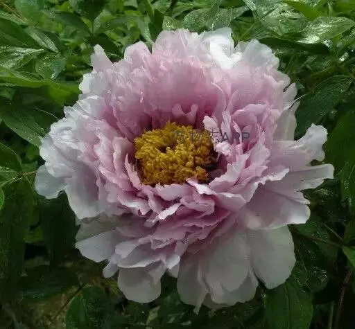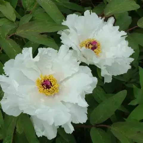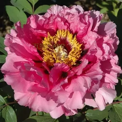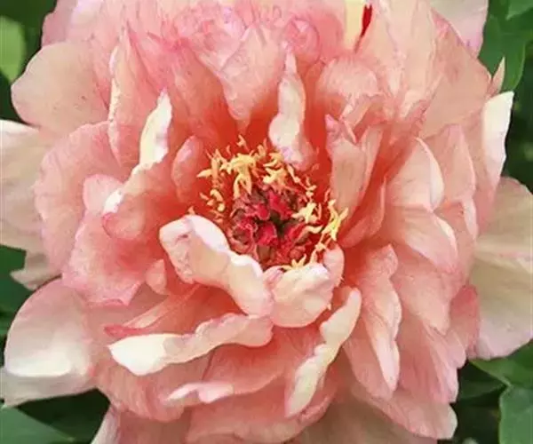皇冠型:外花瓣2-5轮,宽大平展,雄蕊大部分或全部瓣化成细碎曲皱花瓣,瓣群周密高耸,形似皇冠。内花瓣排列不规则,瓣间常杂有正常雄蕊或退化中的雄蕊,瓣间也常残留有花药;雌蕊退化或瓣化,偶有结实。此类花型以“蓝田玉”、“胡红”、“姚黄”、“首案红”、等品种为代表。