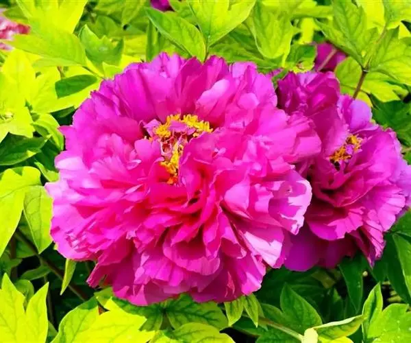 牡丹花大色艳,品种繁多。有的品种花器齐全,萼片、雄蕊、雌蕊发育正常,如“似荷莲”、“凤丹白”等;但有的品种雄、雌蕊瓣化或退化,形成了多姿形美的花型,五彩缤纷的花朵。
