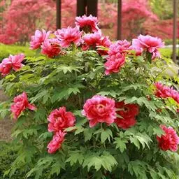 直立型:枝条直立挺拔而较高,分布紧凑,展开角度小,枝与垂直线的夹角多在30°以内。节间较长,新生枝年生长量在10-15cm,一般五年生株高40-50cm,高者达1m以上。如“首案红”、“紫二乔”、“姚黄”等。