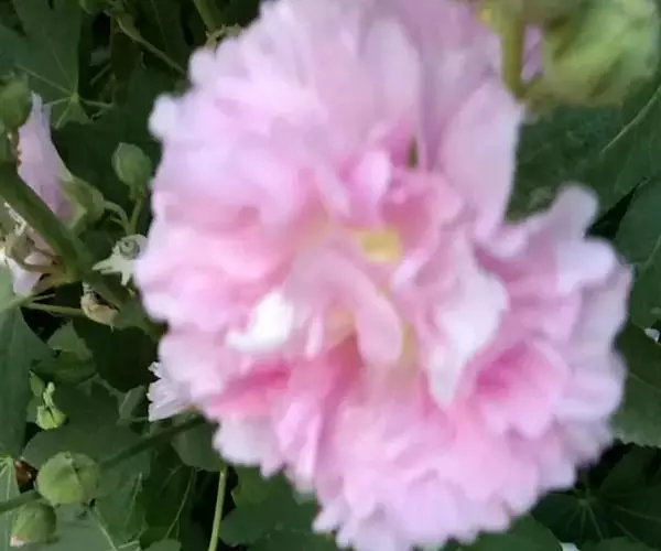 菊花型:花瓣6轮以上,花瓣形状相似,排列整齐,层次分明,自外向内逐渐变小,并偶有瓣化,雌蕊5-11枚,正常生长或退化变小。有些品种柱头有瓣化现象,结实力较差,此类花型以“玫瑰红”、“丛中笑”、“银红巧对”、“锦袍红”等品种为代表。