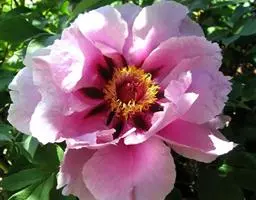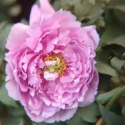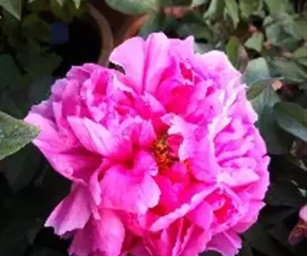 蔷薇型:花瓣多轮,花瓣由外向内逐渐变小,雄蕊部分瓣化成正常花瓣,雌蕊退化变小或瓣化,结实力差。此类花型以“紫二乔”、“乌金耀辉”、“红霞争辉”等品种为代表.