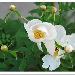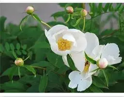 与牡丹的区别:花瓣内面基部具深紫色斑块。叶为二至三回羽状复叶,小叶不分裂,稀不等2-4浅裂。花大,花瓣白色。
