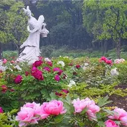隋代,牡丹的栽培数量和范围开始逐渐扩大,当时的皇家园林和达官显贵的花园中已开始引种栽培牡丹,并初步形成集中观赏的场面。《隋志素问篇》中说道:“清明次五时牡丹华。”这又足以说明牡丹作观赏植物则规模更大。据唐《海山记》记载:“隋帝辟地二百里为西苑(今洛阳西苑公园一带),诏天下进花卉,易州进二十箱牡丹,有赫红、飞来红、袁家红、醉颜红、云红、天外红、一拂黄、软条黄、延安黄、先春红、颤风娇......”,隋都西苑种植牡丹与隋炀帝广泛收集民间的奇花异草有关。
