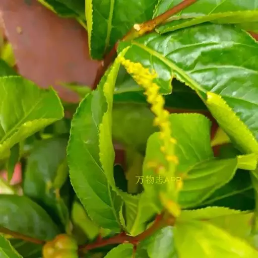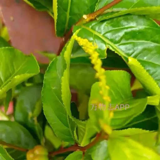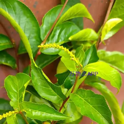 叶互生,纸质,叶片卵形或卵状披针形,稀椭圆形,长6-13厘米,宽2-5.5厘米,顶端渐尖,基部渐狭或短尖,有时钝,边缘有尖的腺状密锯齿,齿间距1-2毫米;中脉两面均凸起,背面尤著,侧脉6-10对,弧形上升,离缘2-3毫米弯拱网结,网脉明显;叶柄长2-5毫米,无腺体;托叶小,腺体状,长约0.5毫米。