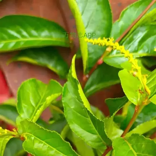 花单性,雌雄同株同序,花序顶生和腋生,长2.5-6厘米,雌花生于花序轴下部,雄花生于花序轴上部。雄花:花梗极短;苞片阔卵形或三角形,长约1. 3毫米,宽约1.5毫米,顶端凸尖,基部两侧各具一近圆形、直径约1毫米的腺体,每一苞片内有花2-3朵;萼片3,披针形,长约1.2毫米,宽0. 6-0.8毫米;雄蕊3枚,花药球形,比花丝长。雌花花梗极短或不明显;苞片卵形,长约2.5毫米,宽近1.5毫米,顶端芒尖,尖头长达1.5毫米,基部两侧各具一正圆形、直径约1.5毫米的腺体;小苞片2,长圆形,长约1.5毫米,顶端具不规则的3齿;萼片3,基部稍联合,卵形,长约1.5毫米,宽约1.2毫米,顶端尖,边缘有不明显的小齿;子房球形,直径约1.5毫米。