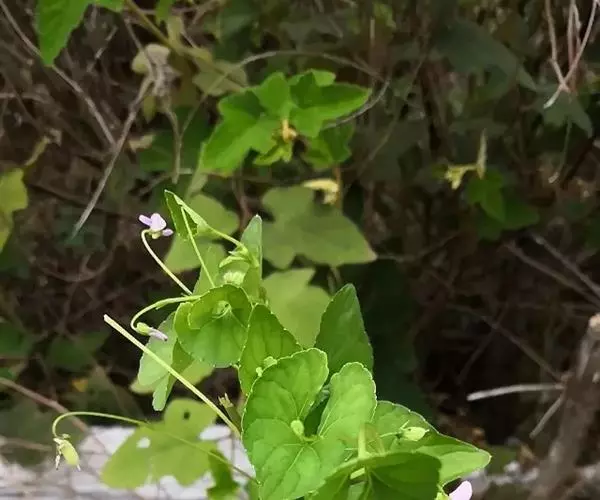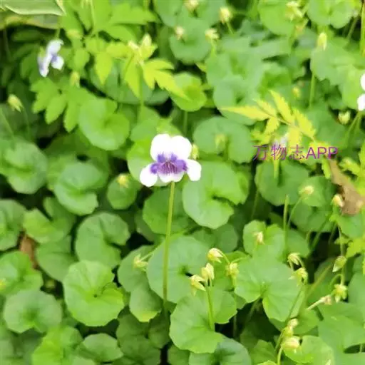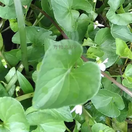 如意草又名弧茎堇菜。多年生草本,高达35cm。根茎横走,粗约2mm,褐色,密生多数纤维状根,向上发出多条地上茎或匍匐枝,地上茎通常数条丛生,淡绿色,节间较长;匍匐枝蔓生,节上生不定根。基生叶三角状心形或卵状心形,先端急尖,稀渐尖,基部通常心形,边缘有疏锯齿,长1.5-3cm,宽2-5.5cm,具长柄;茎生叶与基生叶片相似,叶柄较短;托叶披针形,长5-10cm,全缘或具极稀疏的细齿和缘毛。花淡紫色或白色,单生于叶腋,具长梗,花梗中部以上有2枚线形小苞片;花萼卵状披针形,基部附属物极短呈半圆形;花瓣狭倒卵形,下方花瓣较短,有明显的暗紫色条纹,基部具长约2mm的短距。子房无毛,花柱呈棍棒状,柱头2裂,两侧裂片肥厚,向上直立,中央部分隆起呈鸡冠状。蒴果长圆形,长6-8mm,粗约3mm,无毛,先端尖。花、果期较长。