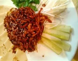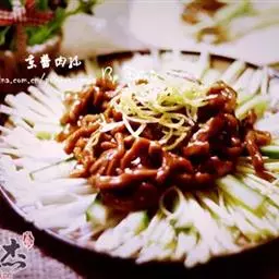 京酱肉丝,是一道知名度很高的菜肴,它是北京菜中的经典代表菜之一。制作时选用猪瘦肉为主料,辅以甜面酱…