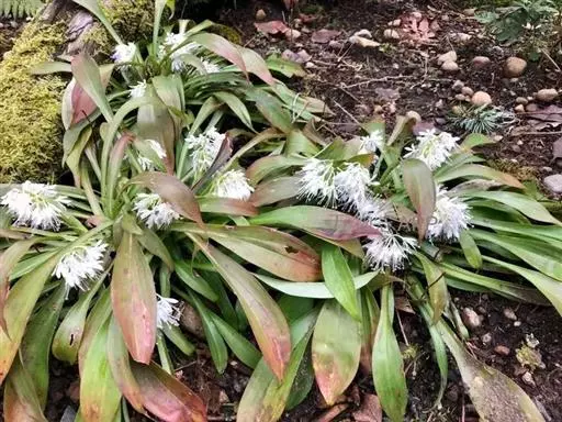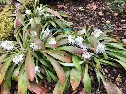 根状茎粗约1厘米,长1-5厘米。叶宽(0.6-)1.5-4.8厘米,连柄长6-27厘米。花葶通常比叶长,较少短于叶,长7-52厘米;总状花序具几朵至二十几朵花,花梗比花被稍长;花被片白色、淡红色至紫色,近匙状倒披针形,长6-10毫米,3-5脉;雄蕊长10-18毫米,至少有1/3伸出花被;子房上部3裂约达1/3-2/5,花柱长16-20毫米,稍高于雄蕊,在果期则明显高出雄蕊之上,柱头小,头状,稍3裂。蒴果长约为宿存的花被片的1/2-2/3。种子细梭状,两端有长尾,连尾长4-5毫米。花期3-4月,果期5-6月。