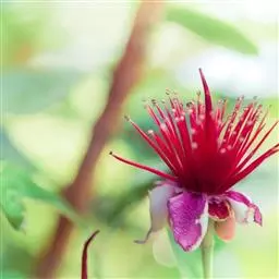 草莓番石榴是番石榴属植物,株高可达2米,树皮平滑,叶对生,倒卵形或椭圆形,先端钝,全缘,厚革质,…