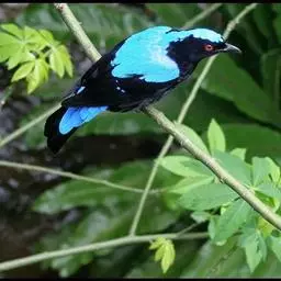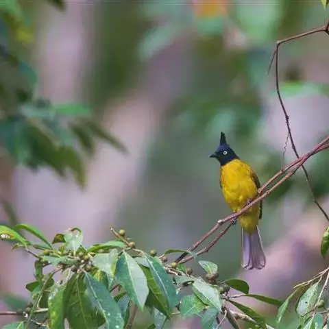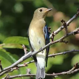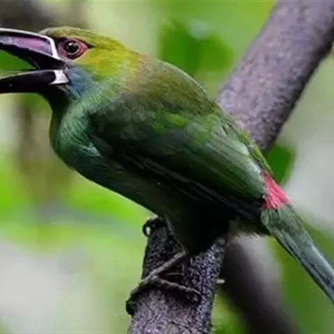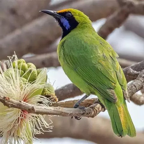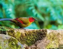 蓝翅叶鹎:小型鸟类,体长15-18厘米。雄鸟通体草绿色,尾蓝绿色,肩和翅亮蓝 色,胸缀有黄色,…
