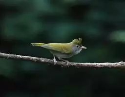 暗色鸦雀是莺科、鸦雀属小型鸟类,体长12-13厘米。嘴短而粗厚、黄色似鹦鹉嘴,头顶具短的羽冠、暗灰色,…