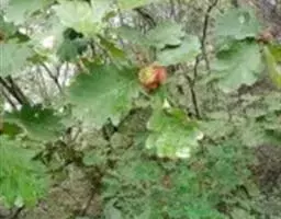 壳斗杯形,包着坚果1/3-1/2,直径1.5-1.8 厘米,高0.8-1.5厘米,壳斗外壁小苞片三角状卵形,呈半球形瘤状突起,密被灰白色短绒毛,伸出口部边缘呈流苏状。坚果卵形至长卵形,直径1.3-1.8厘米,高2-2.3厘米,无毛,果脐微突起。花期4-5月,果期9月。