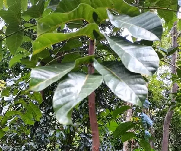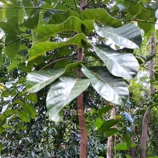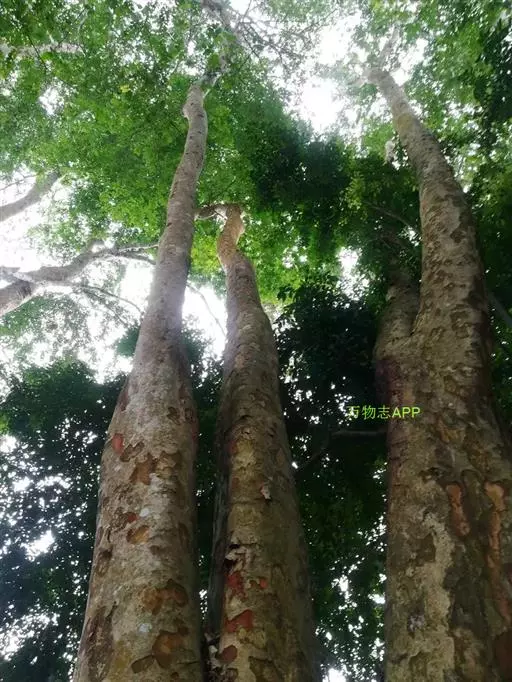 见血封喉 乔木,高25-40米,胸径30-40厘米,大树偶见有板根;树皮灰色,略粗糙;小枝幼时被棕色柔毛,干后有皱纹。
