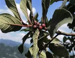 叶椭圆形至倒卵形,幼时被浓密的长粗毛,达缘具锯齿,成长之叶长椭圆形,长7-19厘米,宽3-6厘米,先端渐尖,基部圆形至浅心形,两侧不对称,表面深绿色,疏生长粗毛,背面浅绿色,密被长粗毛,沿中脉更密,干后变为茶褐色,侧脉10-13对;叶柄短,长约5-8毫米,被长粗毛;托叶披针形,早落。