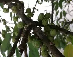 核果梨形,具宿存苞片,成熟的核果,直径2厘米,鲜红至紫红色;种子无胚乳,外种皮坚硬,子叶肉质,胚根小。果期5-6月。