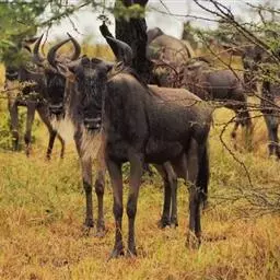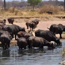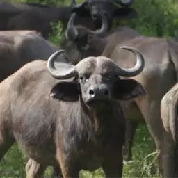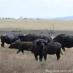 非洲野水牛:共有5个亚种。头体长2.1-3.4米,身高1-1.7米,体重300-900千克。胸膛宽…