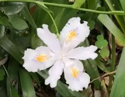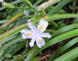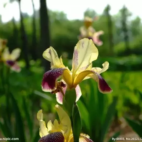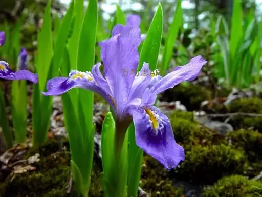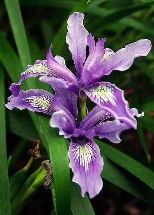 双色野鸢尾为多年生草本植物,叶子呈剑状淡绿色。…
