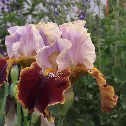 德国鸢尾,为鸢尾科鸢尾属的植物。根状茎粗壮,扁圆形,有环纹;叶绿色灰绿色,堂具白粉,…