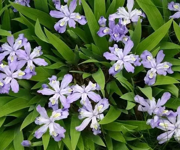 亮叶鸢尾为常绿多年生草本植物。叶面光滑、亮绿色,花茎扁平叶状。原产于巴西。