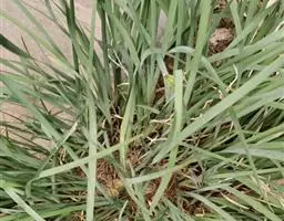 多年生密丛草本,植株基部围有残留折断的老叶叶鞘,黄褐或棕褐色。根状茎块状,短粗,木质,棕褐色;须根黄棕色,分枝少。叶略扭曲,狭条形,长10-20厘米,宽约3毫米,顶端渐尖,无明显的中脉。