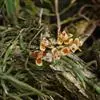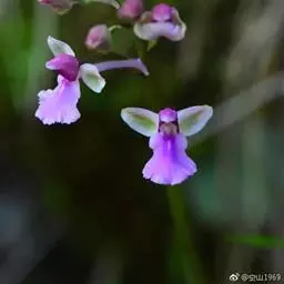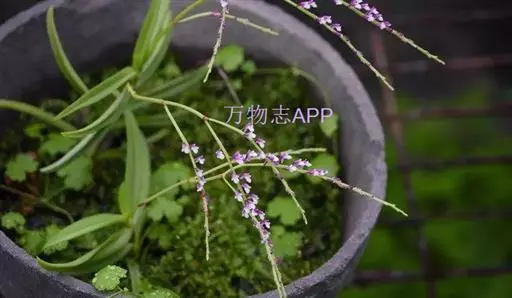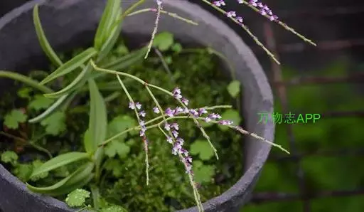 匙唇兰(学名:Schoenorchis gemmata (Lindl.) J. J. Smith):茎质地稍硬,下垂,通常弧曲状下弯,稍扁圆柱形,不分枝。叶扁平,伸展,对折呈狭镰刀状或半圆柱状向外下弯。圆锥花序从叶腋发出,比叶长或多少等长,密生许多小花;花不甚开展;花瓣紫红色,倒卵状楔形,长1.1-1.5毫米,宽约1毫米,先端截形而其中央凹缺,具1条脉;唇瓣匙形,3裂。蒴果近卵形,长约6毫米,粗3毫米。花期3-6月,果期4-7月。