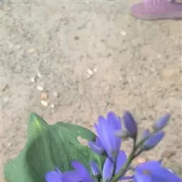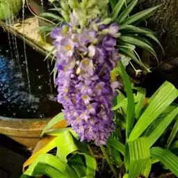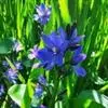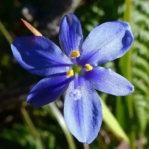 花序梗短,长1~1.5厘米,基部有1披针形苞片。花序在花期直立,果期下弯,花通常3~5朵(稀有10余朵),或有1~3朵,蓝色。花被片卵状披针形或长圆形,长1~1.5厘米,花梗长到1厘米,雄蕊6枚,其中1枚较大,花药长圆形,其余5枚较小;花丝丝状。