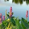鸭舌草:又名水锦葵。别名水玉簪、肥菜、合菜。雨久花科雨久花属植物鸭舌草。全国的水稻种植区,以及长江流域及以南地区均有分布。 鸭舌草为雨久花科植物,性味苦凉,具有清热解毒的功效。治痢疾、肠炎、急性扁桃体炎、丹毒、疔疮等。
