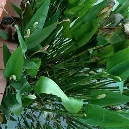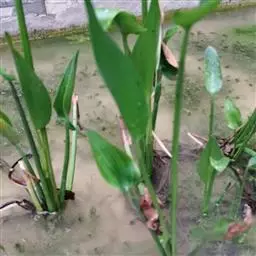 水生草本;根状茎极短,具柔软须根。茎直立或斜上,高(6-)12~35厘米。全株光滑无毛,叶基生或茎生,叶片形状和大 鸭舌草 小变化较大,由心状宽卵形、长卵形至披针形,长2~7厘米,宽0.8~5厘米,顶端短突尖或渐尖,基部圆形或浅心形,