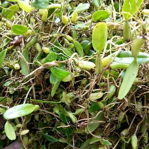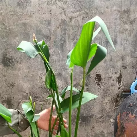 全缘、具弧状脉。叶柄长10~20厘米,基部扩大成开裂的鞘。鞘长2~4厘米,顶端有舌状体,长约0.7~1厘米。总状花序从叶柄中部抽出。该处叶柄扩大成鞘状。
