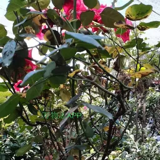 危害症状:多食性害虫。以雌成虫和若虫群集在琴叶珊瑚植株叶背及枝梢刺吸汁液。引起叶色变黄,枝梢枯萎,花朵大量脱落,光合作用减弱,长势衰竭,提早落叶,甚至整枝枯死。