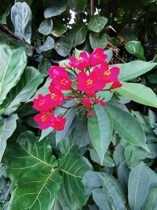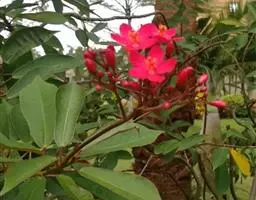 琴叶珊瑚(学名:Jatropha integerrima Jacq.)是大戟科痳风树属植物。常绿灌木,花红色,植物体有乳汁,乳汁有毒。单叶互生,倒阔披针形,常丛生于枝条顶端。叶基有2-3对锐刺,叶端渐尖。聚伞花序,花瓣5片,花冠红色;且为单性花,雌雄同株,自着生于不同的花序上;另有粉红品种。蒴果成熟时呈黑褐色。
