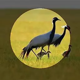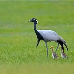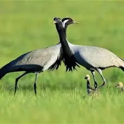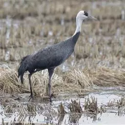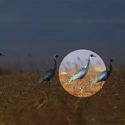 蓑羽鹤大型涉禽,体长68~92厘米,是鹤类中个体最小者。通体蓝灰色,眼先、头侧、喉和前颈黑色,…