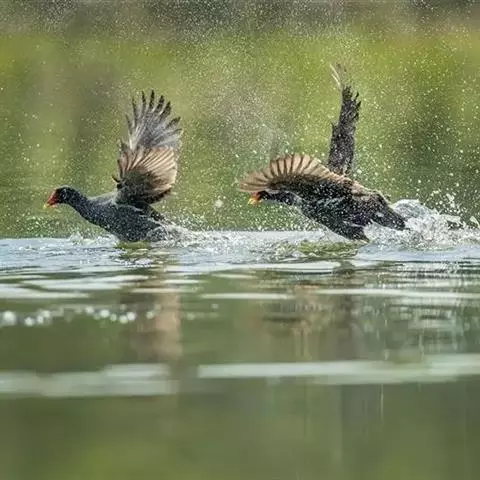黑水鸡:是鹤形目、秧鸡科的鸟类,共有12个亚种。中型涉禽,体长24-35厘米。嘴长度适中,…