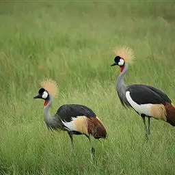 东非冕鹤是大型涉禽。体长127厘米。额部向外凸出,有乌黑色绒羽,…