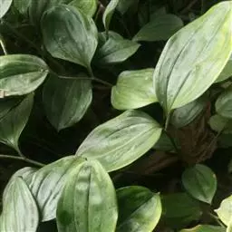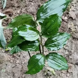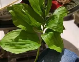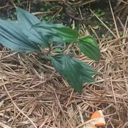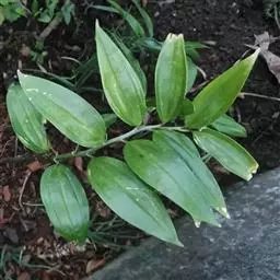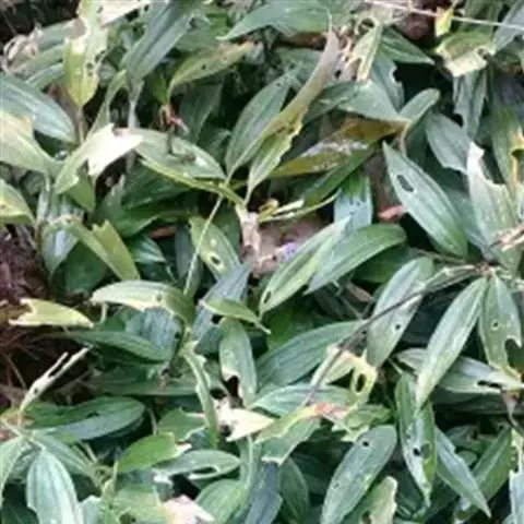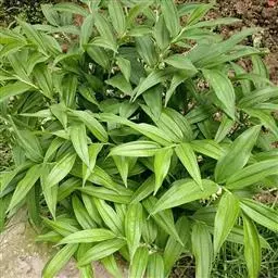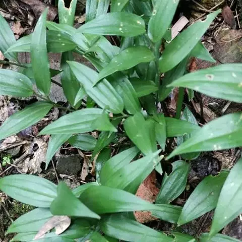 根状茎圆柱状,粗3-10毫米。茎高10-40厘米。叶厚纸质,卵形、卵状披针形或卵状椭圆形,长3-8厘米,宽1-4厘米,先端渐尖或稍尾状,基部通常近截形或略,带心形,具柄,两面无毛。
